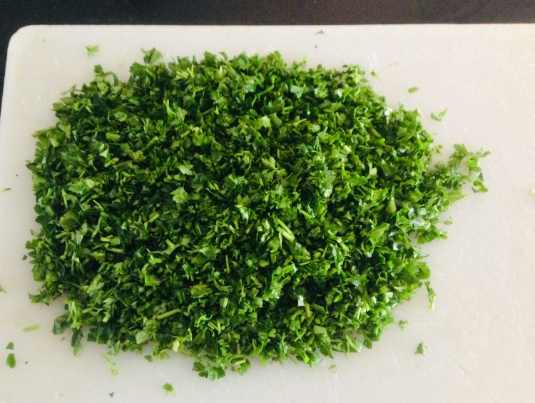 - In a test of your knife-skills, finely chop the Parsley and Mint together. Or you can cheat and use a food processor, if you have one. 😉
